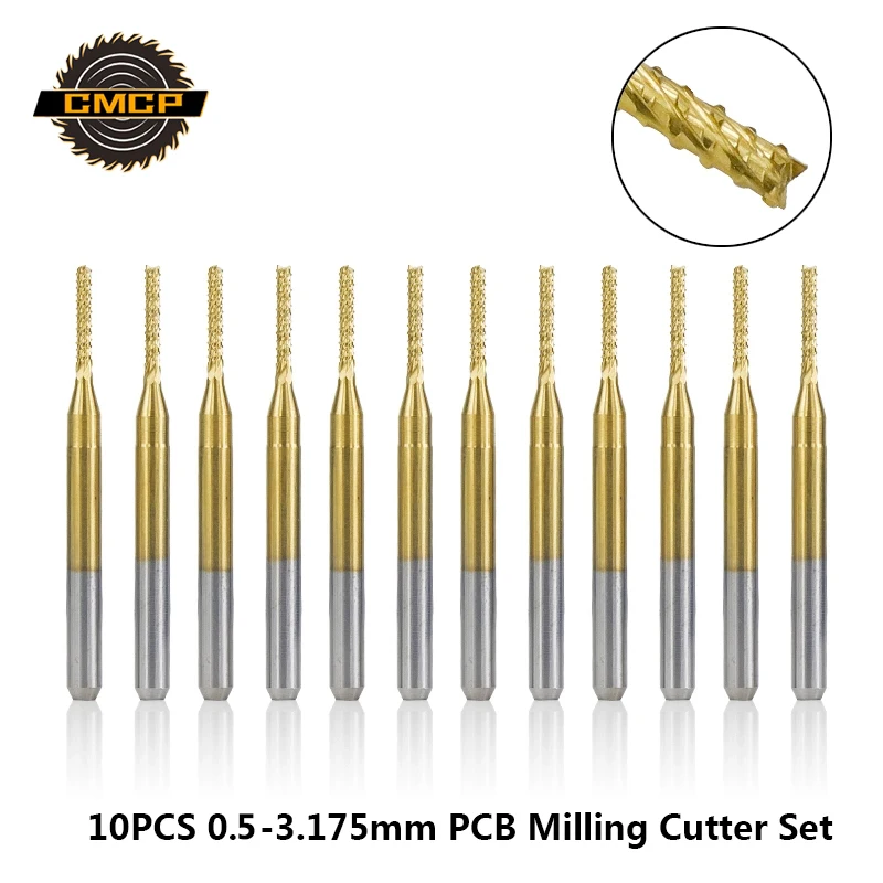 Get 10pcs 0.5-3.175mm Titanium Coated PCB Milling Cutter Set Carbide CNC End Mills For Engraving Machine End Milling Cutter only US $9.44 - 11.84 just for today