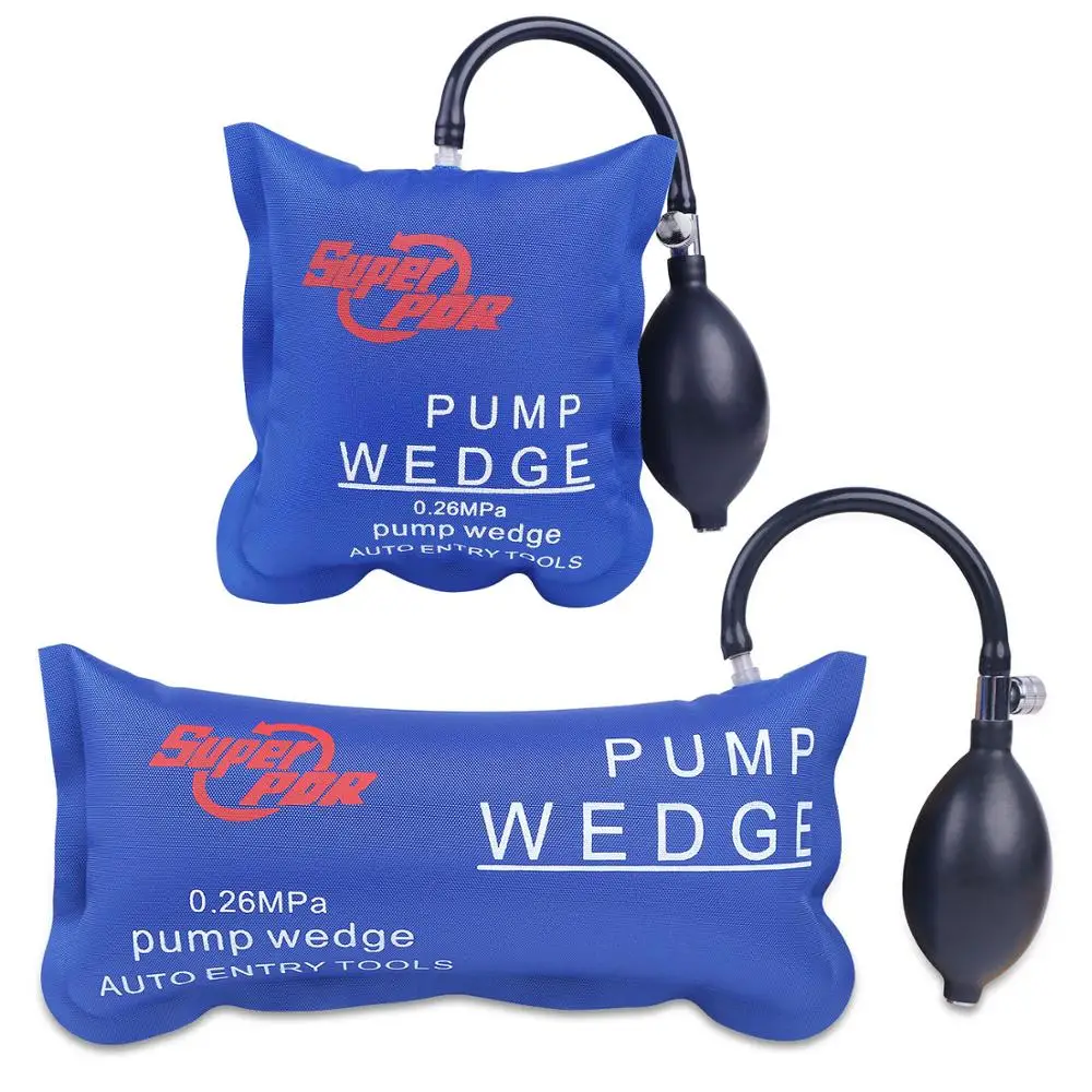 Air Wedge are used betweem a car door and the door frame. This wedge allows the user to creat a space between the door and frame so a probe can be used to unlock the door via the interior unlock or lever. The tools is also commonly used as a spacer when installing interior doors, leveling furniture, UPVC windows and doors, kitchen appliances etc.